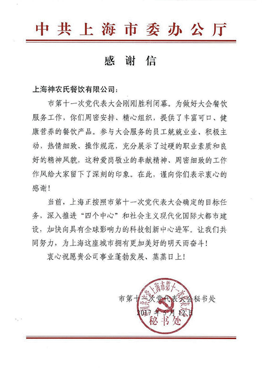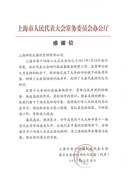 我公司在團(tuán)餐領(lǐng)域取得的成績得到了市、區(qū)政府等有關(guān)部門的認(rèn)可。經(jīng)市政府有關(guān)部門的多次考證、層層篩選,從2005年開始,我公司已成為上海市人代會和黨代會指定的餐飲服務(wù)供應(yīng)商。我們提供的餐飲服務(wù)得到了廣大參會代表的一致好評。同時(shí)我們也已參與市級各類大型活動的餐飲供應(yīng)。